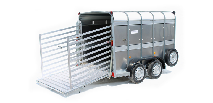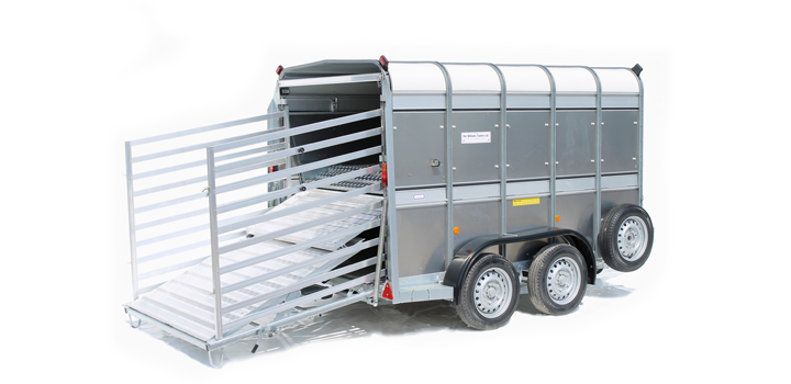 With trailer body lengths of 10’, 12’ and 14’ available, and height options of 6’ and 7’ the Ifor Williams TA510 range from Atkins Farm Machinery, offers a high spec trailer which is designed for owners who need the maximum volume and gross weight available. TA510 Ifor Williams trailers are fitted with a twin axle beam (tri axle option on 14’ model), leaf sprung suspension, galvanized steel chassis, aluminium side panels, heat reflecting roof, and grip-faced aluminium planking covered rear ramp.